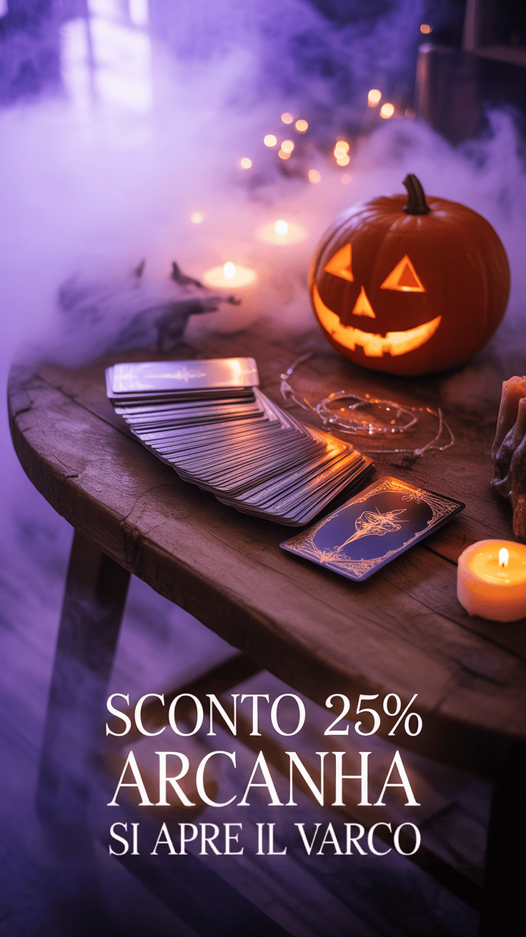 Arcanha apre il varco tra i mondi con un’offerta straordinaria. Solo dal 31 ottobre al 2 novembre, tutti i consulti saranno scontati del 25%, un modo per ringraziare chi ci sceglie ogni giorno e accogliere chi entra per la prima volta nel nostro cerchio.